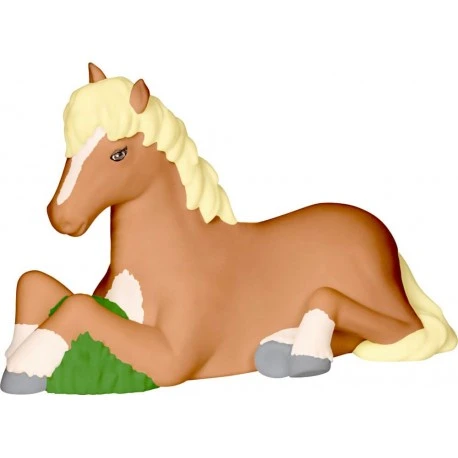 Spardose in der Form eines liegenden Pferdes für Pferdefreunde. Das Tolle: nach Einwurf einer Münze wiehert das Pferd für einige Sekunden. So macht Sparen richtig Spaß! Batterie enthalten..