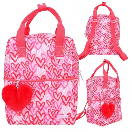 One Love by TOPModel: Der Rucksack in tollen Rot- und Rosatönen ist voller niedlicher Herzen. Mit geräumigem Hauptfach und Fronttasche mit Reißverschluss, Karabiner innen, verstellbaren Trägern, Tragegriff mit Verschluss sowie reflektierenden Elementen auf der Front. Superflauschiges Plus: der große Herz-Anhänger. Material: 100 Prozent PES