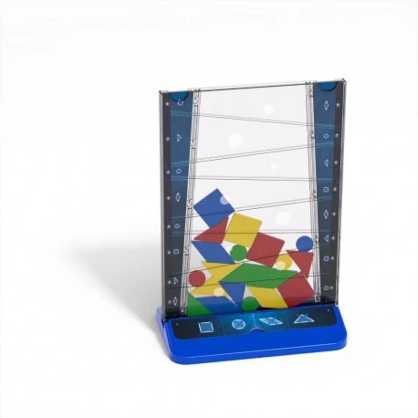 Geschicklichkeit und Taktik sind bei diesem Familienspiel gefragt. Reihum werfen die Spieler jeweils einen Spielstein in das Spielbrett. Punkte gibt es für die höchste Ebene, in die der Spielstein ragt sowie wenn Sonderpunkte berührt werden. Doch Vorsicht: Gleiche Formen oder Farben mit dem eingeworfenen Spielstein zu berühren, ist verboten. Passiert es dennoch, geht der Spieler leer aus. Wer am Ende die meisten Punkte hat, gewinnt. Auch in Teams spielbar! Inhalt: 1 Spielbrett (bestehend aus Sockel und Schacht), 36 Spielsteine (je 9 in 4 Spielerfarben), 4 Zählsteine, 1 Punktetafel, 4 Seitenteile, 2 Sockelteile, 8 Joker, 4 Punktemarker, 1 Anleitung.