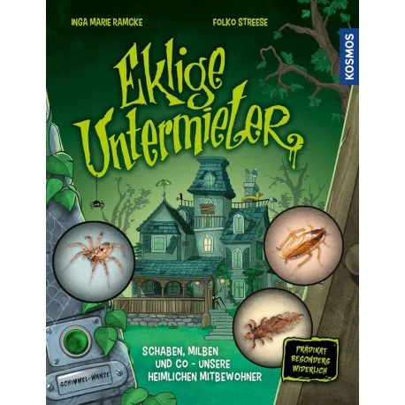 Familie Schimmel-Wanze lebt in einem gruseligen alten Haus und ist dort nicht allein… Man möchte gar nicht so genau hinschauen, wer da noch so wohnt: von Läusen in der Garderobe, Würmern im Klo bis zu Schaben in der Küche. Ganz zu schweigen von der Haarbalgmilbe oder dem nachtaktiven Silberfischchen. Hier machen Kinder schaurig-schöne Bekanntschaft mit den Top 20 unserer ekligsten Untermieter und erfahren viel Wissenswertes rund um diese faszinierenden Tiere..