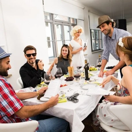 Krimi-Dinner für zu Hause: Im Lokal „La Speranza wurde die Leiche von Restaurantbesitzer Giuseppe (Pepi) Roni gefunden. An diesem Abend treffen sich Familie und Freunde, um dem armen Pepi bei gutem italienischen Essen ihren Respekt zu erweisen. Doch einer der Gäste ist damit beschäftigt, seine Spuren zu verwischen, um als Pepis Mörder nicht entdeckt zu werden! Während des gemeinsamen Dinners folgen die Gäste Hinweisen und kommen so nach und nach dem Mörder auf die Schliche. Ein Spiel für einen Abend voller Rätsel, Verdächtigungen und jeder Menge Spaß!.