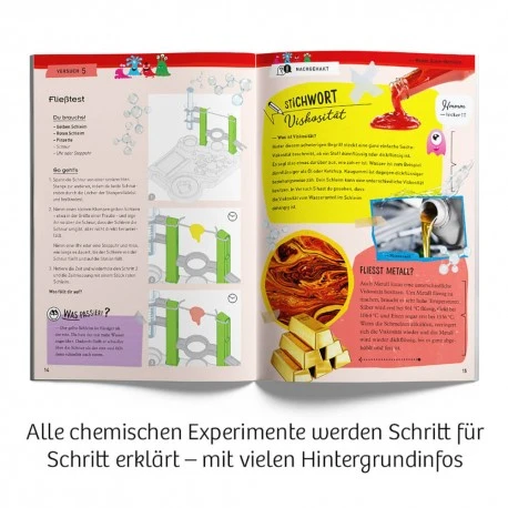 ACHTUNG. Nicht geeignet für Kinder unter 8 Jahren. Benutzung unter Aufsicht von Erwachsenen. Enthält einige Chemikalien, die eine Gefahr für die Gesundheit darstellen. Lies die Anweisungen vor Gebrauch, befolge sie und halte sie nachschlagebereit.