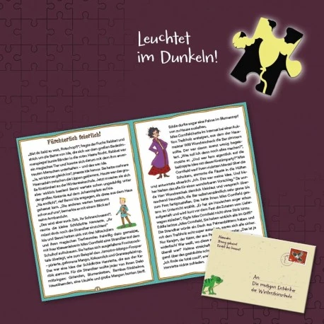 Puzzle und spannende Story in einem! Seit Wochen haben sich die Kinder darauf gefreut und heute Abend ist es endlich soweit: In der Wintersteinschule steigt eine Kostümparty! Doch die Stimmung wird getrübt, denn die Lehrerin Miss Cornfield ist plötzlich verschwunden und die Kinder finden seltsame Nachrichten! Was ist auf dem Schulfest passiert? Und wo sind eigentlich die magischen Tiere? Los geht eine spannende Such- und Rätseljagd in der Wintersteinschule. Taucht ein in die exklusive Kurzgeschichte aus der Bestsellerreihe „Die Schule der magischen Tiere, puzzelt das kunterbunte Wimmelbild und löst mit Hilfe der Anleitung Schritt für Schritt die Rätsel. Besonderes Gimmick: eine magische Geheimbotschaft! Abgerundet wird dieses aufregende und geheimnisvolle Puzzle-Erlebnis durch den genialen Effekt von Leuchtfarbe. So strahlt das Bild auch nachts. Ein aufregendes Geburtstagsgeschenk!.