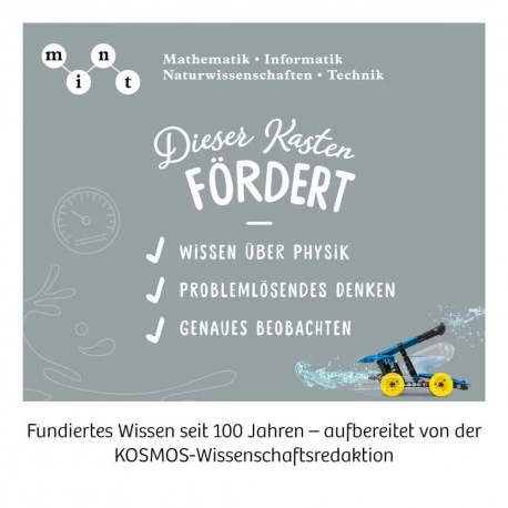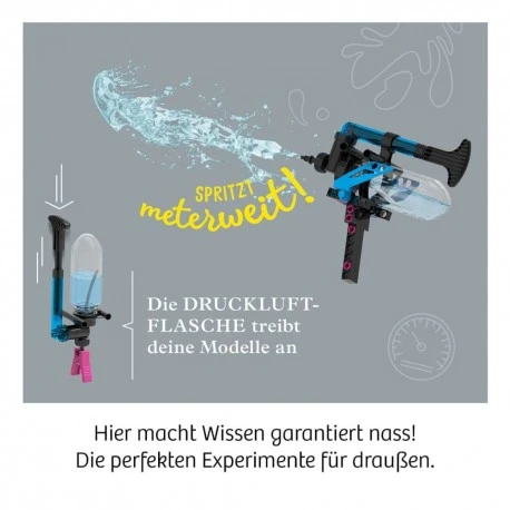 Wasser Marsch! Aus den Steckteilen entstehen 6 coole Modelle, die alle mit Wasser vollgetankt werden – und schon geht’s ab! Weitschuss-Wettbewerb mit der Wasserpistole, lustige Spiele mit dem Sprinkler und zwei Autos und Boote sorgen für eine Menge Spielspaß mit Wasser für Kinder von 8 bis 12 Jahren. Der Kern des Ganzen: die besondere Druckluftpumpe, die für jedes Modell als einzigartiger Raketenantrieb dient. Doch wie wirken Wasserkraft und Druckluft zusammen? Mit spannenden Experimenten werden die Modelle getestet. Herausgefunden, wie viele Pumpstöße es für den längsten Schuss mit der Wasserpistole braucht? Schnell in der ausführlichen Anleitung notieren. Ob im Sommer oder in der Badewanne – Wasser macht zu jeder Jahreszeit Spaß!.