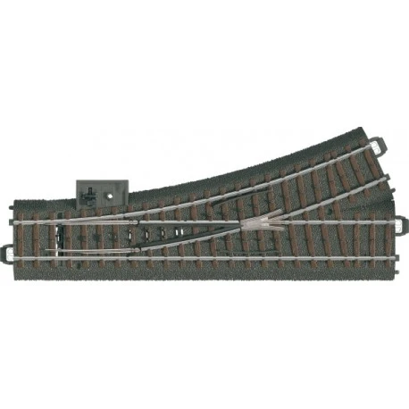 188,3 mm / R2 = 437,5 mm / 24,3°. Mit Handschalthebel. Elektroantrieb 74491, Digital-Decoder 74461 und Weichenlaternen 74470 nachrüstbar..
